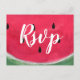 Summer wedding RSVP postcards with watermelon graphics and changeable black text at the back side of the postcard