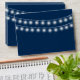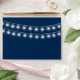 Modern Summer Wedding String Lights Design envelope with simple yet elegant glowing white string lights hanging across the top with a stylish mix of modern typography on a summer night dark blue background. A simple and trendy, preppy design, perfect for summer! Click the "CUSTOMIZE IT" button to customise name,address,fonts, move text around,change the background colour and create your own unique one-of-a-kind envelope design.