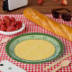 Celebrate the warmer weather with convenient, unbreakable paper plates. This plate features the wheel of the year in summery greens. Lettering is white on a fresh green background, with curling leaf accents in between.