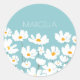 Summer White Cosmos Flowers Custom Name Classic Round Sticker