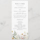 This design features a watercolor border of wildflowers in shades of gold, red, blue, and green. Perfect for spring and summer weddings.
