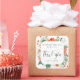 The size is perfect and the design has a softness with the beautiful flowers around the edges. The black lettering on the white background is sharp. It stands out beautifully. I love the Mixture of font styles as it catches the eye.