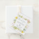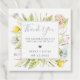 Beautiful watercolor summer wildflower arrangement with matching pattern backing, thank you favour tags. Chic green foliage and delicate florals in green, white, yellow, pink and dusty blue.