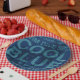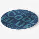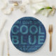 Words that mean summer: Tropical Breezes, Cool Blue and Tequila Sunrise combined with images of Monstera Leaves, Palm Trees, Hibiscus and create this graphic design. The paper napkins coordinate with the paper plates in the reversed colour positions.