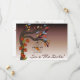 This Summers End Save The Date features a colourful tree, chinese lanterns and a caged bird that were all mouse drawn. Great for Fall Weddings or weddings with an oriental theme.