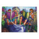 Summertime Reading Art by Traci Van Wagoner features a boy and a girl sitting in an urban backyard on a hot summer day with their feet in a cool tub, drinking lemonade, and reading books. A cat and a dog lay curled at their feet on the wood deck. Perfect for book lovers and bibliophiles of all ages.