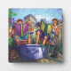Summertime Reading Art by Traci Van Wagoner features a boy and a girl sitting in an urban backyard on a hot summer day with their feet in a cool tub, drinking lemonade, and reading books. A cat and a dog lay curled at their feet on the wood deck. Perfect for book lovers and bibliophiles of all ages.