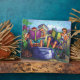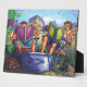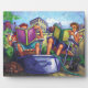 Summertime Reading Art by Traci Van Wagoner features a boy and a girl sitting in an urban backyard on a hot summer day with their feet in a cool tub, drinking lemonade, and reading books. A cat and a dog lay curled at their feet on the wood deck. Perfect for book lovers and bibliophiles of all ages.