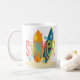 Sunshine in a Mug: Your Summer Starts Here! This bright and cheerful mug features the word "SUMMER" in a burst of colour, surrounded by summertime favourites. It's the perfect way to bring a little sunshine to your morning coffee ritual and fuel your summer adventures. This mug is sure to brighten your day and anyone else's who sees it!