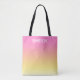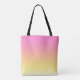 Summery beach tote with sunset colours of pink, orange, and yellow, and the word, "summertime." The reverse side has the same sunset colours without any text, and is a perfect background for your own images and text if you would like to customise this bag to make it more personal.