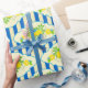Summery Blue Stripes & Lemons and Leaves Pattern Wrapping Paper