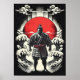 Sumo Wrestler In Red Moon, Japanese Anime Tattoo Poster