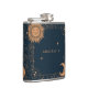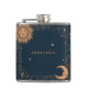 This custom hip flask features retro sun and moon celestial design with your name in sans serif typography.