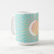 Transform your surroundings with the captivating beauty of this pink and golden sun and white moon and stars design, featuring soft pastel shades of pink, gold and white.