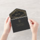 Elegant and vintage wedding all-in-one invite inspired by a tarot card in black and gold featuring a design of a sun, moon, stars, and clouds. PLEASE NOTE the gold featured in this design is NOT real foil and is printed in flat colours. Matching Items in our shop for a complete party theme.