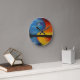 Night and day was a big influence over the idea of yin and yang. Let this decorative clock represent both and add some colour to your living or working space. This was an original painting by Devon Baldwin