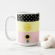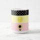 Beautiful mug with sun and polka dots on black, yellow and pink stripes.