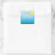 Sun Clouds and Grass on Blue Stripes Baby Shower Square Sticker