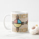 Lovely Zia (Sun) mug with soft Southwestern motif. Artwork by Zeke Sena, New Mexico, USA.