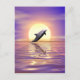 Postcard with my artwork of a sunny water scene and a leaping dolphin.