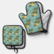 Sun-Drenched Lemons Sky Blue | Kitchen Oven Mitt & Pot Holder Set
