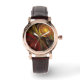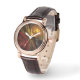 Sun Flower Floral Modern Abstract Art Pattern Perfect Square Brown Leather Watch