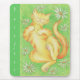 A happy, yellow tabby cat rolling around on the grass in the sunshine. Mousepad with a yellow, orange, green, white and blue customisable design for you to personalise with your own text, pictures and ideas. An original coloured pencil drawing by Jess Perry.