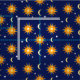 A beautiful, classic patter on a dark nearly-midnight blue. Sun, Moon and stars!