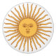 This design contains the Sol de Mayo (Sun of May) that is featured in the centre of the national flag of Argentina. The sun appeared for the first time in the version of the flag released in 1818. According to some historians, the Sun of May represents Inti, the Incan god of the sun. The Sun of May is also linked to Sol Invictus ("The Unconquered Sun"), a Roman god that was identified with the Sun and was the main solar deity in the ancient Roman religion.