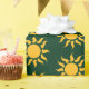 Wrapping paper featuring golden sun on dark green background. Suitable for Christmas, birthdays, and other special occasions.