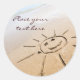 sun drawing on the sand beach. Perfect for greeting cards. Fun, positive and happiness concept.