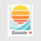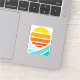 Modern sun in yellows, oranges and reds melting into teal blue ocean waves. For the beach lover!