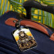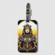 "This evocative design features a central figure adorned in ornate, possibly ancient Egyptian or Middle Eastern-inspired attire, set against a backdrop of a stylised sun, desert dunes, and palm trees. The figure has a serene and knowing expression, suggesting wisdom or mystical insight. The colour palette is dominated by warm golds and contrasting blacks. This design is versatile for products aiming for a mystical, spiritual, or historically inspired aesthetic. Imagine it on meditation accessories, artistic prints, bohemian-style clothing, or branding for holistic services."