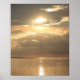 Beautiful sunset with sun rays breaking through a cloudy sky reflected in the sea.