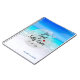 A custom notebook with an image of a tropical beach with crystal clear turquoise waters and a white sandy beach with an azure blue sky overhead. Text says Sun Sand and Salty Kisses.
