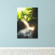 Landscape photograph of a magical scenery with sun shining on a waterfall creating a stunning lighting.