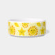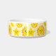 This is a heavy, durable bowl decorated with Tibbies of many colors, the perfect size for hungry/thirsty Tibs. The design is interesting and printing clear.