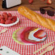 Art from an original watercolor painting of colourful sun radiating energy in warm colours of red, gold and orange. Contemporary modern abstract art with a sunshine theme.