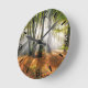 Sunrays in a misty beech forest, golden morning light through the trees on an october day in autumn, Siebengebirge, Rhineland, Germany, Europe. This clock with dial plate is a gift idea for lovers of the outdoors and natural moods. Photo taken by Katho Menden.