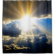 An amazing, bright sun break shining through perfect fluffy clouds.