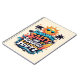 Front and centre is the funky, feel-good quote, wrapped in sunny beach elements: a cool cartoon sun rocking shades, swaying palm trees, vintage surfboard, rolling ocean waves, and cheerful tropical accents like starfish and hibiscus blooms. It’s a whole summer mood — radiating happiness, heat, and high tides.