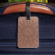 Inspired by the geometric mandala with a boho flare, this luggage tag is a great travel accessory. The sunburst style design features a simulated debossed image on a faux rose gold background. Coordinate with other accessories. Please note, this is not actually debossed or rose gold. Effect is simulated by artist rendition. Choose from many shapes.