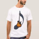 Sunburst Electric Guitar Note Shirt features a sunburst hollow body electric guitar against a musical note.