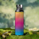 Nothing fancy on this water bottle; just a burst of rainbow colour! The top is sunny yellow, with streaks going down into rose pink. The lower portion has a touch of lavender and purple moving into sky blue. Your monogram, name or other text is at the centre bottom.