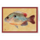 Long Eared Sunfish - detailed side view of a long eared sunfish, Lepomis megalotis, in orange and blue breeding colours. The illustration is in an antique style with a parchment coloured background. From a watercolor by M Rogers.
