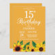 Sunflower 15th Birthday Invitation. Floral Flowers and Yellow Background. Country Vintage Retro. Kids Girl Birthday. 12th 13th 15th 16th 18th 20th 21st 30th 40th 50th 60th 70th 80th 90th 100th, any ages. Printable Digital. For further customisation, please click the "Customise it" button and use our design tool to modify this template.