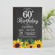 Sunflower 60th Birthday Invitation. Floral Flowers and Chalkboard Background. Country Vintage Retro. Women Birthday. 12th 13th 15th 16th 18th 20th 21st 30th 40th 50th 60th 70th 80th 90th 100th, any ages. Printable Digital. For further customisation, please click the "Customise it" button and use our design tool to modify this template.
