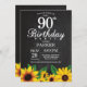 Sunflower 90th Birthday Invitation. Floral Flowers and Chalkboard Background. Country Vintage Retro. Women Birthday. 12th 13th 15th 16th 18th 20th 21st 30th 40th 50th 60th 70th 80th 90th 100th, any ages. Printable Digital. For further customisation, please click the "Customise it" button and use our design tool to modify this template.
