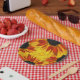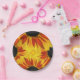 These floral paper plates feature beautiful orange, yellow, red and gold sunflowers wide open against a golden yellow background. A fantastic idea for gardeners!