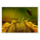 A card for any occasion. A close up of a huge sunflower. A hawk flies across the sky above a hill. The tones are bright with a touch of grunge.